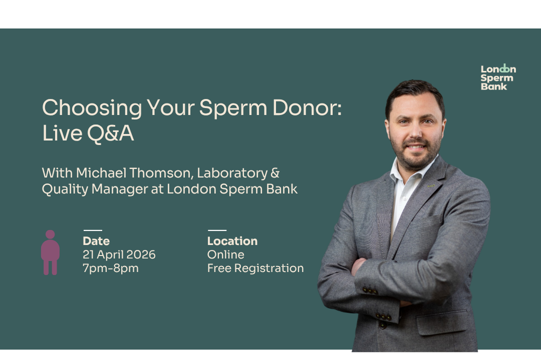 Join us for a free online webinar designed to demystify the process of choosing a sperm donor and empower you with the knowledge you need to take the next step. 📆 Tuesday 21st April 2026 💻 Online, Zoom ⏰ 7-8PM Michael Thomson, Laboratory & Quality Manager at the UK’s leading sperm bank, will guide youContinue reading "Choosing your sperm donor: Live Q&A with an expert"